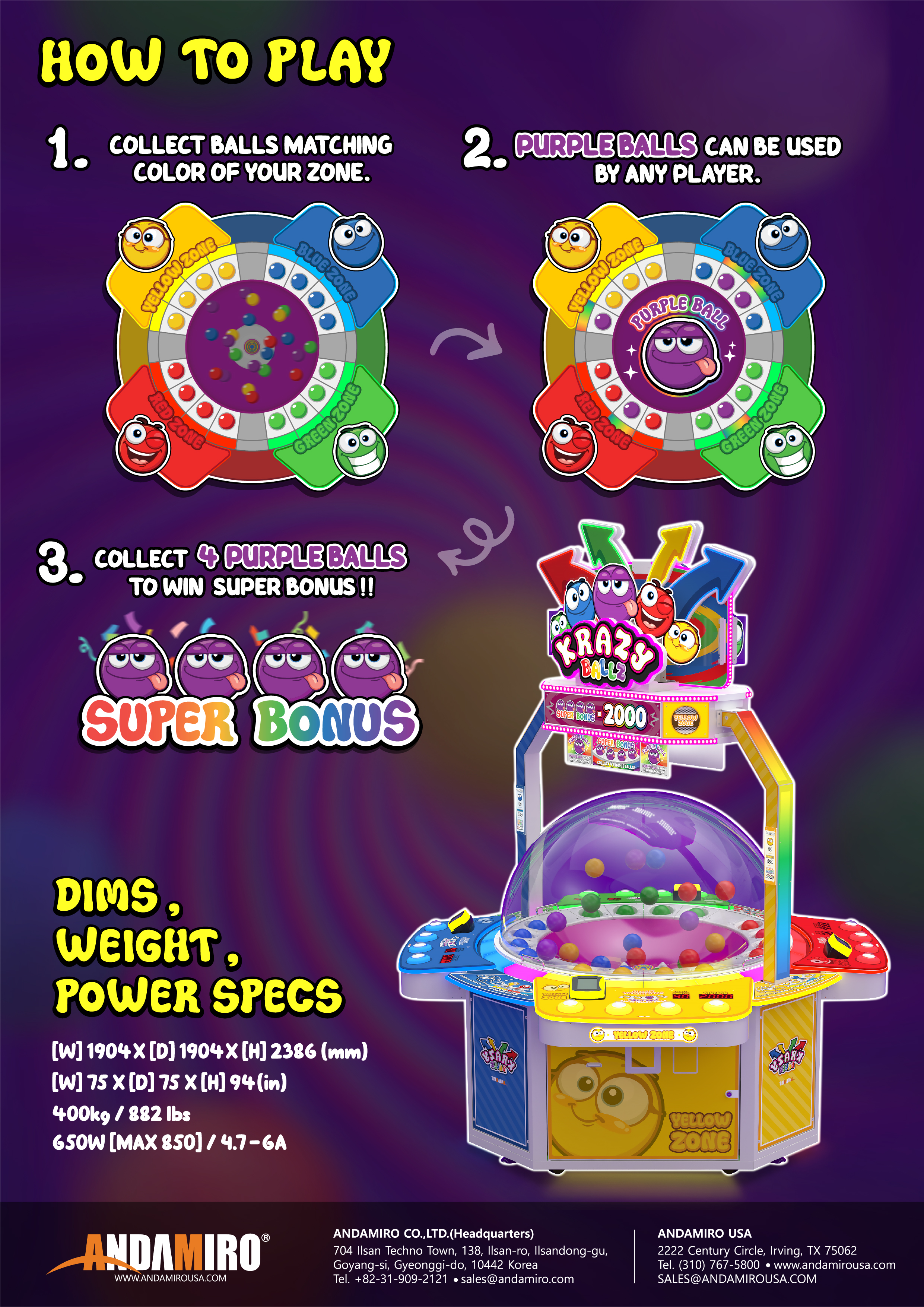 It’s a perfect storm of fun! Andamiro’s Krazy Ballz offers high-energy,