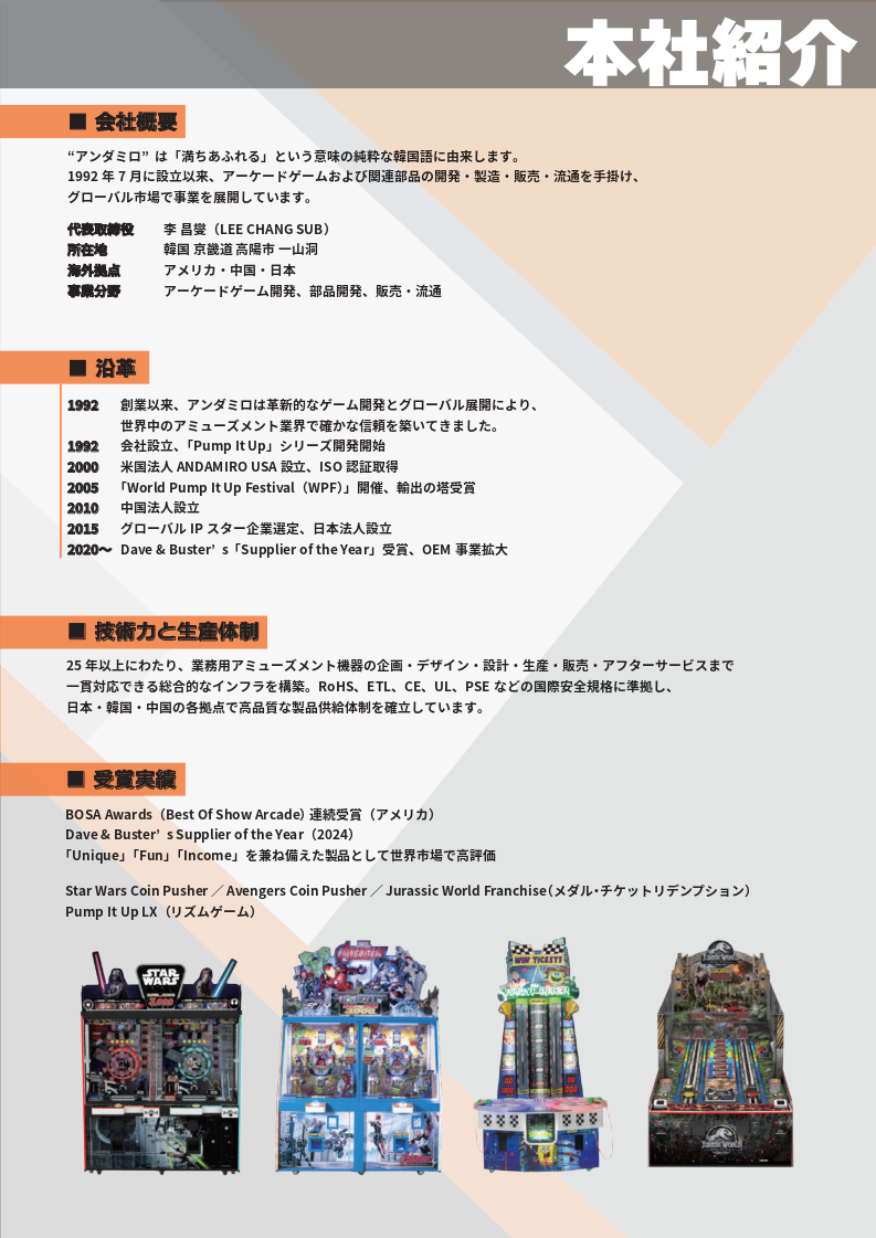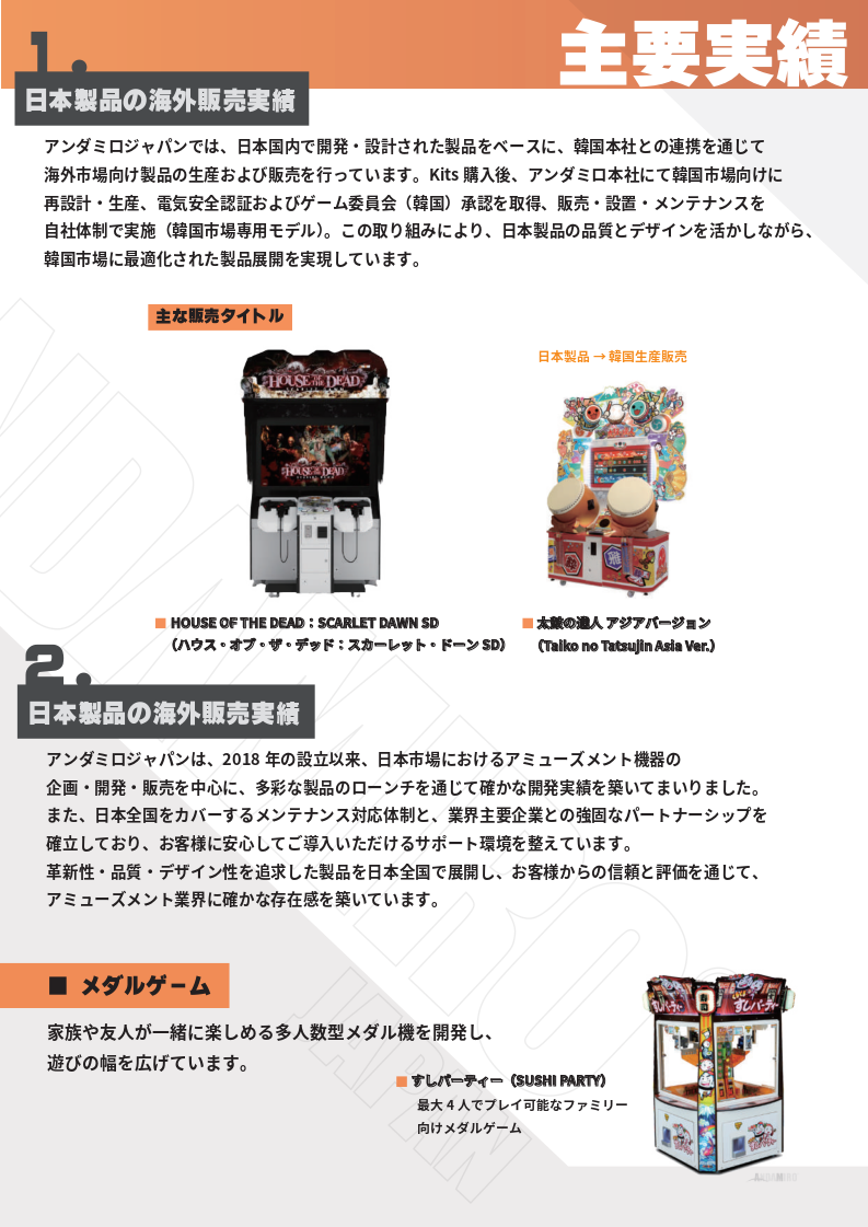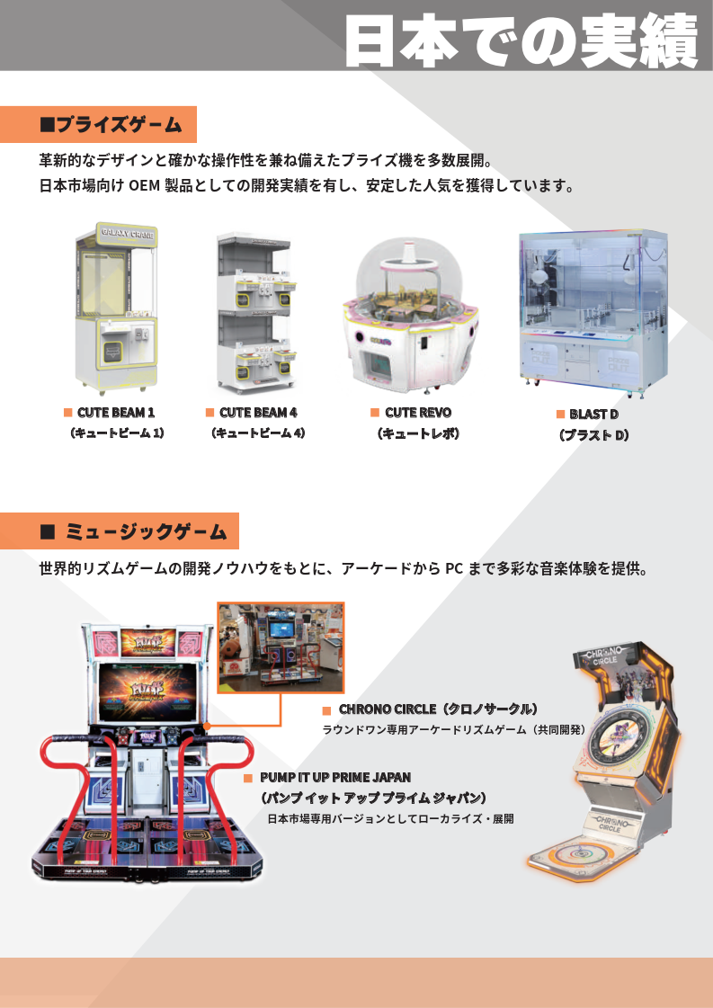 アミューズメントゲーム機の企画 · 開発 · 販売