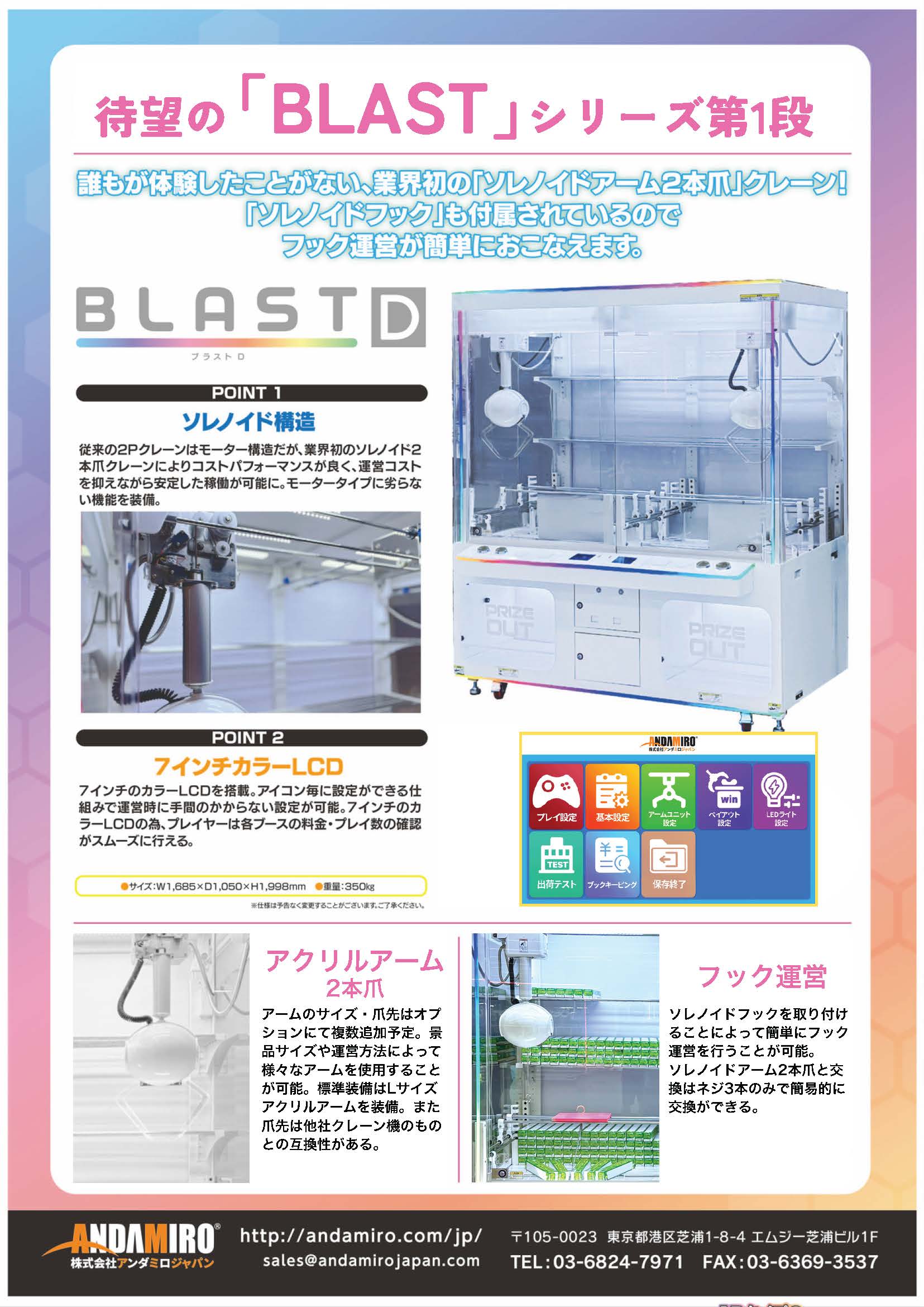 誰もが体験したことがない、業界初の「ソレノイドアーム2本爪」クレーン!「ソレノイドフック」も付属されているのでフック運営が簡単に行えます。
